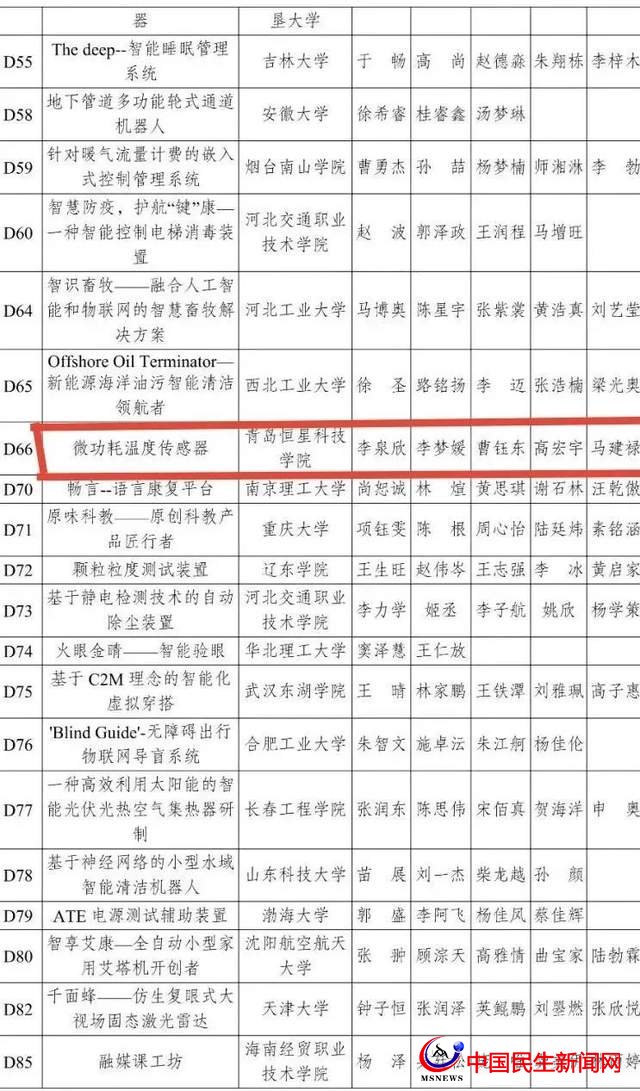 李泉欣、李夢媛、曹鈺東、高宏宇、馬建祿的微功耗溫度傳感器項目為學(xué)校爭取到三等獎的榮譽,祝賀以上獲獎同學(xué)。