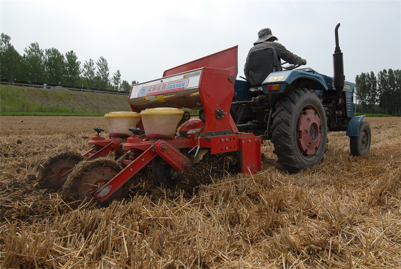 中國民生新聞網(wǎng)訊 6月20日一大早,山東省青島市即墨區(qū)移風(fēng)店鎮(zhèn)肖蘭家莊村農(nóng)民曹作識(shí)就帶著他新購置的玉米播種機(jī)開始在田間忙碌起來。今年他種植30多畝玉米,這一塊地的面積有5畝。在上周看到天氣預(yù)報(bào)后,他卯足了力氣要抓住墑情“搶播快種”。他說“今年的墑情有點(diǎn)干旱,要趕著墑情好把這地趕緊搶種上。這5畝地用機(jī)器一個(gè)小時(shí)就能播種完。”