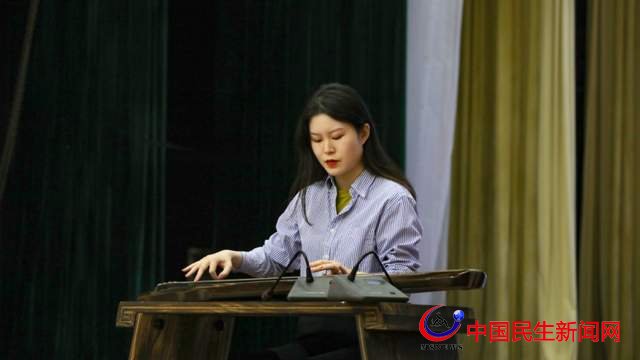 全體師生齊唱國歌,觀看天安門升旗視頻,全場(chǎng)莊重肅穆。人文學(xué)院專任教師崔灝晨老師演奏了精彩絕倫的古箏表演。隨后,授課正式開始。