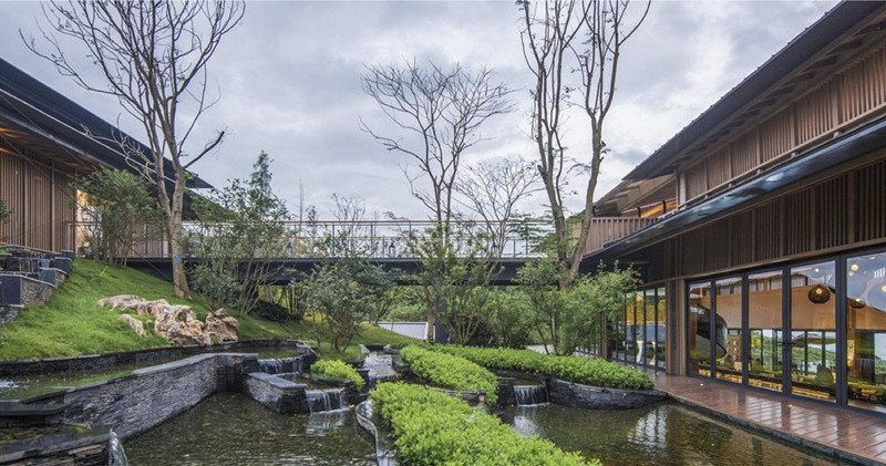 教學(xué)區(qū):追求與建筑和諧共生、相得益彰的內(nèi)部景觀。