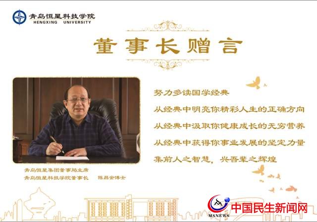 青島恒星科技學(xué)院在剛剛結(jié)束的2022年畢業(yè)典禮上,恒星董事長陳昌金即興發(fā)言,他寄語恒星畢業(yè)學(xué)子,要努力多讀國學(xué)經(jīng)典,遵行“文明、博學(xué)、實(shí)踐、創(chuàng)新”的校訓(xùn),集古人之智慧,興吾輩之輝煌。