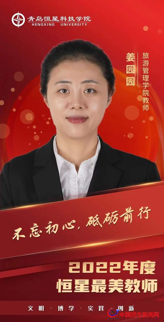 姜園園,中共黨員,研究生學(xué)歷,副教授職稱,現(xiàn)任青島恒星科技學(xué)院旅游管理學(xué)院行業(yè)院長兼教師。近年來參與省級課題2項,主持校級課題3項,發(fā)表論文5篇,參與出版教材1部,實用新型專利2項。指導(dǎo)的學(xué)生團隊在山東省大學(xué)生創(chuàng)新創(chuàng)業(yè)訓(xùn)練計劃中獲省級立項,在第十一屆全國大學(xué)生電子商務(wù)挑戰(zhàn)賽中獲校級一等獎;2022 年“全國高校商業(yè)精英挑戰(zhàn)賽品牌策劃競賽”山東省總決賽一等獎。先后被學(xué)校評為“優(yōu)秀教師”、“優(yōu)秀共產(chǎn)黨員”等榮譽。
