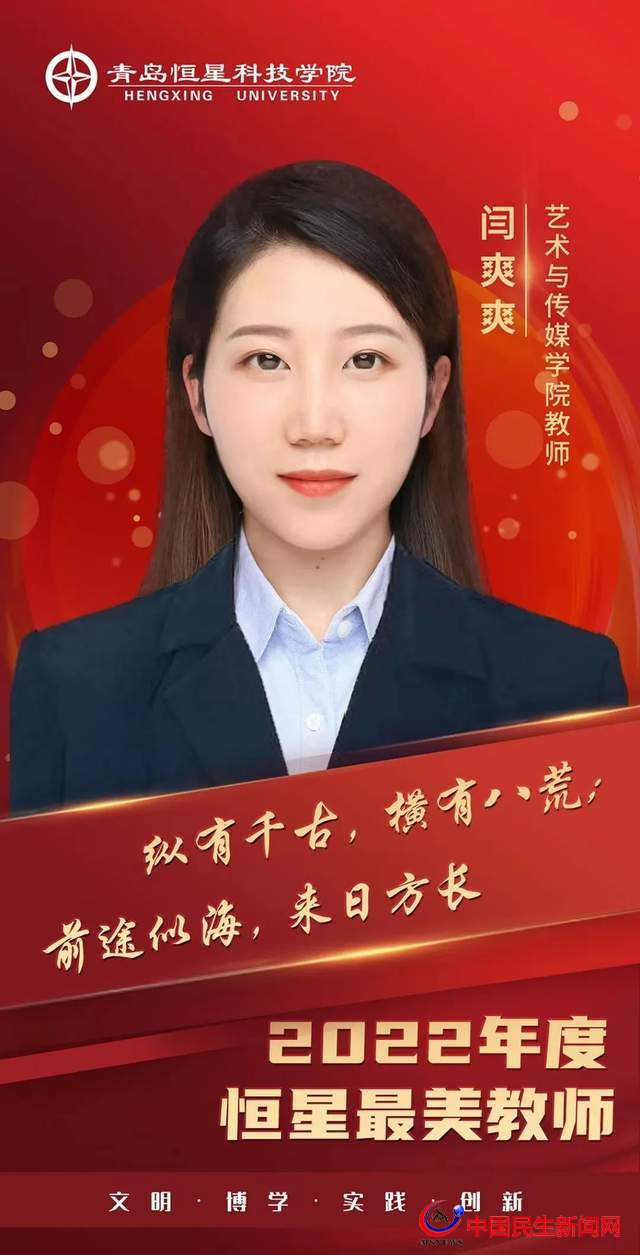 閆爽爽,中共預(yù)備黨員,研究生學(xué)歷,講師職稱,畢業(yè)于首都體育學(xué)院,現(xiàn)任青島恒星科技學(xué)院藝術(shù)與傳媒學(xué)院教研室主任、教師。2017年參加工作以來,她追求專業(yè)品質(zhì),善于學(xué)習(xí),從不懈怠,全身心投入到教育事業(yè)中去。近5年來參與省級課題2項,主持校級課題3項,發(fā)表論文10余篇;2021年獲得山東省體育舞蹈優(yōu)秀裁判員,先后獲得校級“優(yōu)秀教師”“優(yōu)秀教研室主任”稱號。