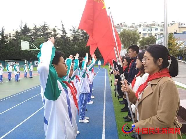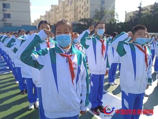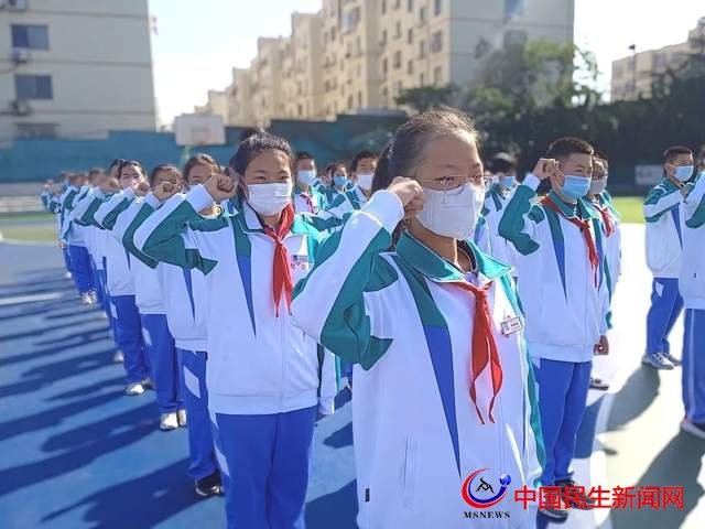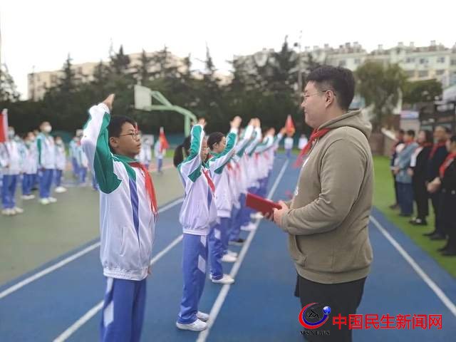 七年級(jí)少先隊(duì)員代表江琛霖領(lǐng)誓,重溫入隊(duì)誓詞。大隊(duì)輔導(dǎo)員王老師帶領(lǐng)呼號(hào),“準(zhǔn)備著,為共產(chǎn)主義事業(yè)而奮斗!”隊(duì)員們高聲回答:時(shí)刻準(zhǔn)備著!”活動(dòng)接近尾聲,在退旗曲中,全體少先隊(duì)員敬禮。