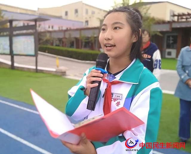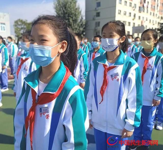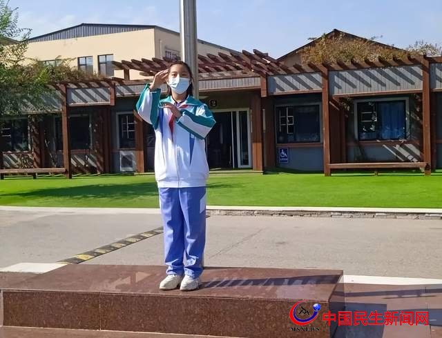 當(dāng)中國(guó)少年先鋒隊(duì)隊(duì)歌前奏響起時(shí),少先隊(duì)員們伴隨著樂(lè)曲歌唱:“我們是共產(chǎn)主義接班人,繼承革命先輩的光榮傳統(tǒng),愛(ài)祖國(guó),愛(ài)人民,鮮艷的紅領(lǐng)巾飄揚(yáng)在前胸……”,驕傲自豪的心情在心中激蕩,隊(duì)員葉碩雯指揮。