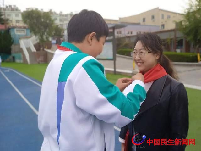 隨后,吳校長(zhǎng)宣讀聘任中隊(duì)輔導(dǎo)員決定,為獲聘中隊(duì)輔導(dǎo)員頒發(fā)了聘書(shū),由少先隊(duì)員代表為中隊(duì)輔導(dǎo)員老師們敬獻(xiàn)紅領(lǐng)巾。