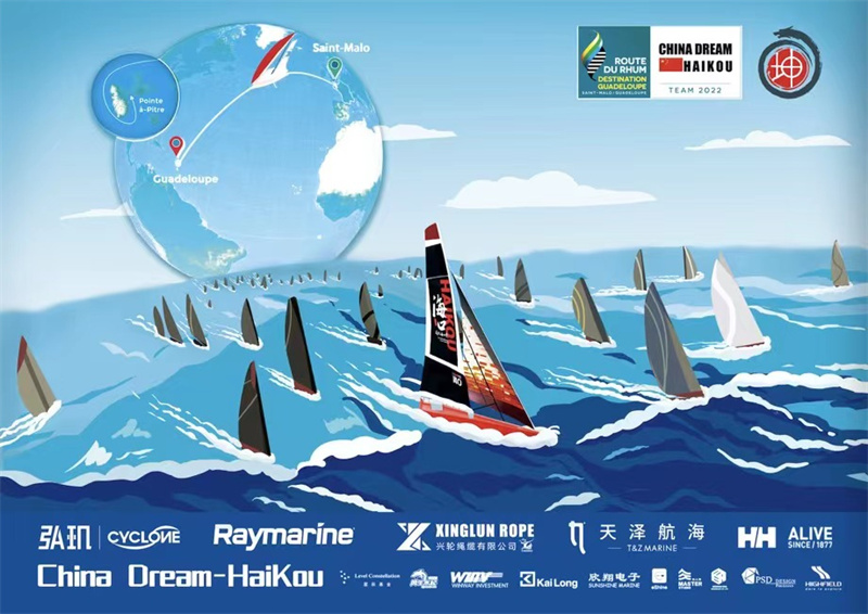 據(jù)了解,朗姆路單人跨大西洋帆船賽創(chuàng)辦于1978年,每四年一屆,比賽船隊(duì)從法國(guó)圣馬洛出發(fā),通過(guò)單人不間斷方式跨越大西洋,終點(diǎn)站為加勒比海的瓜德羅普島,總航程達(dá)3543海里。該比賽已成為世界頂尖單人離岸賽手云集的航海盛筵。