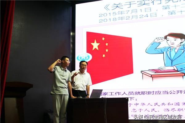 憑著多年從教經(jīng)驗(yàn)和法律實(shí)踐經(jīng)驗(yàn),朱律師很快的把同學(xué)們帶入了法律的海洋中。朱律師首先從國(guó)家憲法日、就職宣誓、憲法的法律效力、憲法史等方面帶領(lǐng)大家初步認(rèn)識(shí)憲法,一個(gè)小的互動(dòng)環(huán)節(jié)——模擬就職儀式公開憲法宣誓,將會(huì)場(chǎng)氣氛掀起了一個(gè)小高潮。