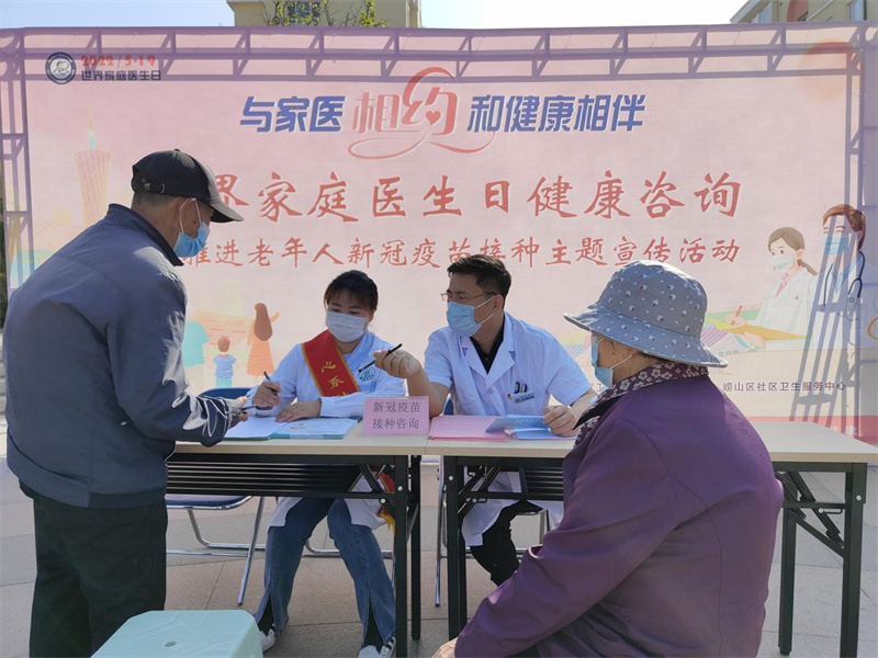 在5.19世界家庭醫(yī)生日到來之際,中心還相繼開展了表彰交流和健康咨詢義診活動。5月18日中心借助全民核酸檢測的契機,在居民區(qū)設置咨詢點,開展“世界家庭醫(yī)生日健康咨詢暨推進老年人新冠疫苗接種主題宣傳活動”,由全科醫(yī)生、家醫(yī)助手、心理醫(yī)生和中醫(yī)科醫(yī)師共同組成的中心家庭醫(yī)生服務團隊現(xiàn)場為居民們免費提供血糖血壓監(jiān)控、心理咨詢和中醫(yī)診脈服務,發(fā)放健康教育宣傳材料,并安排預防接種門診的醫(yī)務人員現(xiàn)場為老年居民解答新冠疫苗接種的困惑和疑問,并開展現(xiàn)場評估。