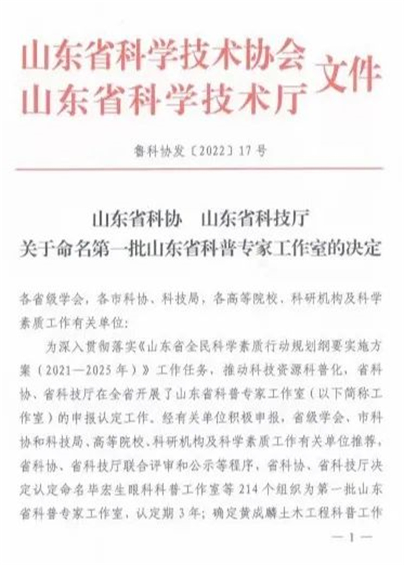 山東省科普專家工作室是省科協(xié)、省科技廳為深入貫徹落實(shí)習(xí)近平總書記關(guān)于科普和科學(xué)素質(zhì)建設(shè)的重要論述,落實(shí)《山東省全民科學(xué)素質(zhì)行動規(guī)劃綱要實(shí)施方案(2021—2025年)》工作任務(wù),推動科技資源科普化,提升科技工作者科普服務(wù)能力,組織開展的科普平臺建設(shè),以促進(jìn)全民科學(xué)素質(zhì)提升,為新時代社會主義現(xiàn)代化強(qiáng)省建設(shè)積極貢獻(xiàn)力量。
