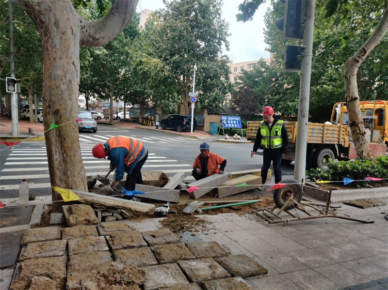 針對(duì)此情況,為細(xì)心、精準(zhǔn)做好為民服務(wù),市北區(qū)城管局市政二公司確立了“便民不擾民”工作理念。黨員項(xiàng)目部主動(dòng)請(qǐng)纓,項(xiàng)目部成員犧牲節(jié)假日時(shí)間,決定利用7天國(guó)慶假期,承擔(dān)起轄區(qū)35所中小學(xué)周邊市政設(shè)施的拉網(wǎng)式排查維修工作,確保以嶄新的市政設(shè)施面貌迎接師生節(jié)后返校。