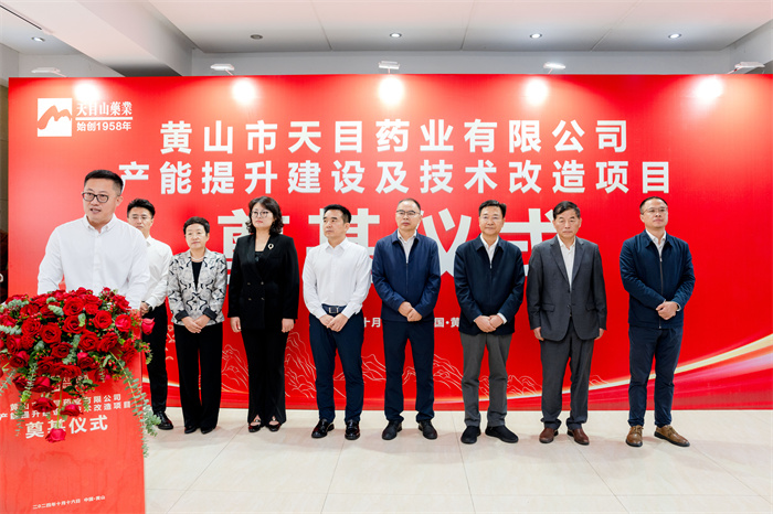 10月16日上午,杭州天目山藥業(yè)股份有限公司(以下簡稱“天目藥業(yè)”)全資子公司黃山市天目藥業(yè)有限公司產能提升建設及技術改造項目奠基儀式在安徽黃山廠區(qū)隆重舉行。