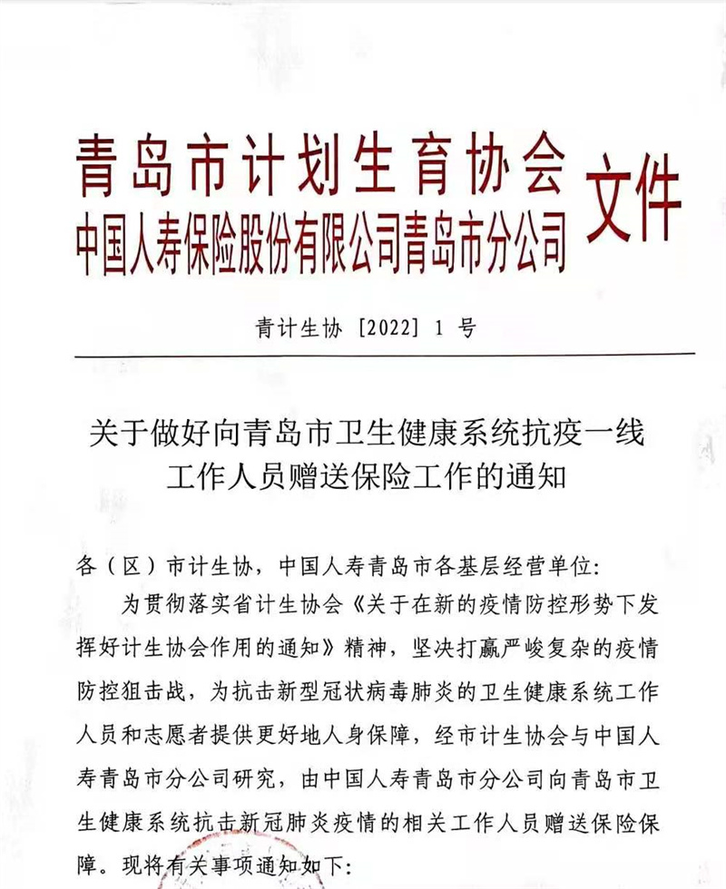 面對此次疫情,青島國壽在第一時間啟動應(yīng)急預(yù)案、升級各項服務(wù)舉措的基礎(chǔ)上開展定向贈送保險工作,既是向所有奮戰(zhàn)在抗疫一線的工作人員致敬,努力為他們安心抗擊疫情解除后顧之憂,更是為堅決打贏這場嚴峻復(fù)雜的疫情防控硬仗提供一份堅實可靠的金融服務(wù)助力。