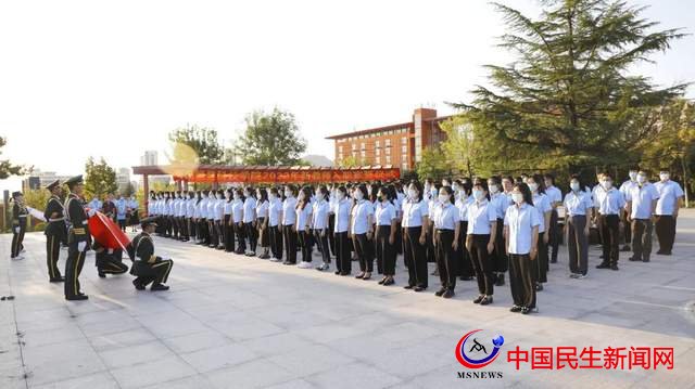 宣誓儀式正式開始,校國旗護衛(wèi)隊邁著整齊的步伐,鏗鏘有力地走向黨建廣場中心,在雄壯的國歌聲中,全體師生莊嚴肅立,齊唱國歌,行注目禮。