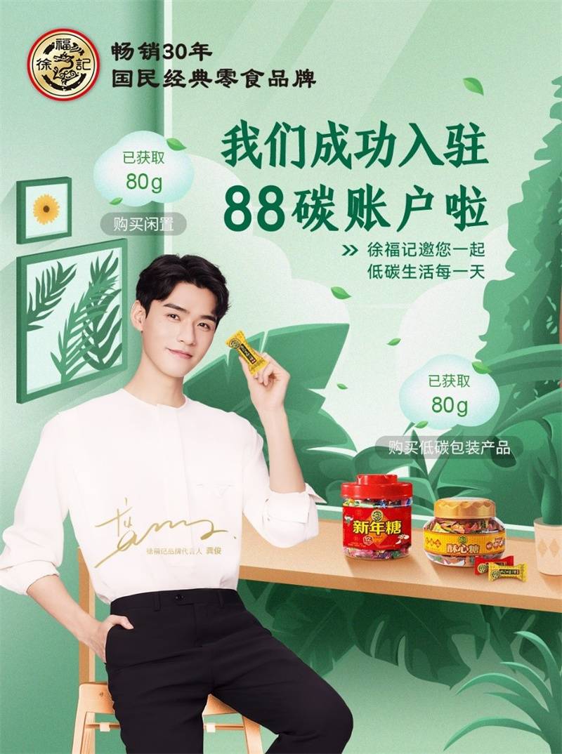此外,徐福記作為唯一一個入駐了阿里巴巴的88碳賬戶的零食品牌,該碳賬戶是覆蓋了超10億人的消費者碳賬戶體系。