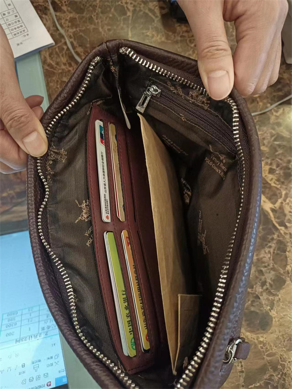 據(jù)揀包的服務(wù)員徐妍妍介紹,她在收拾房間時,在枕頭底下發(fā)現(xiàn)一個棕色的公文皮包,她第一時間向值班經(jīng)理馮敏做了匯報,并及時將皮包送到吧臺,由馮敏進行處理。馮經(jīng)理及時與客戶取得了聯(lián)系,并完璧歸趙。