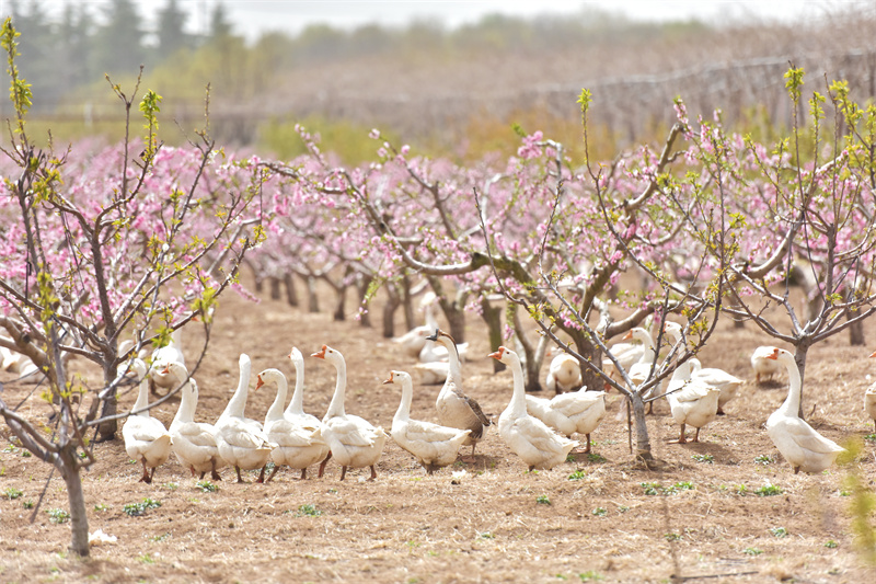在農(nóng)場里,一頭頭黑豬悠然踱步于果林間,而它們的排泄物則通過發(fā)酵處理,轉(zhuǎn)化為滋養(yǎng)千畝農(nóng)田的有機肥料。"莊稼一枝花,全靠肥當家。"韓女士指著長勢喜人的玉米田介紹,農(nóng)場構建起"豬-肥-糧-禽"閉環(huán)生態(tài)鏈:黑豬糞肥種植飼草,飼草喂養(yǎng)雞鴨鵝,禽蛋產(chǎn)品再反哺市場,形成年產(chǎn)值超800萬元的立體農(nóng)業(yè)體系。這種"零污染、零排放"模式不僅獲評青島市生態(tài)循環(huán)農(nóng)業(yè)示范基地,更吸引周邊30余戶農(nóng)民加入合作社,帶動年增收2萬余元。
