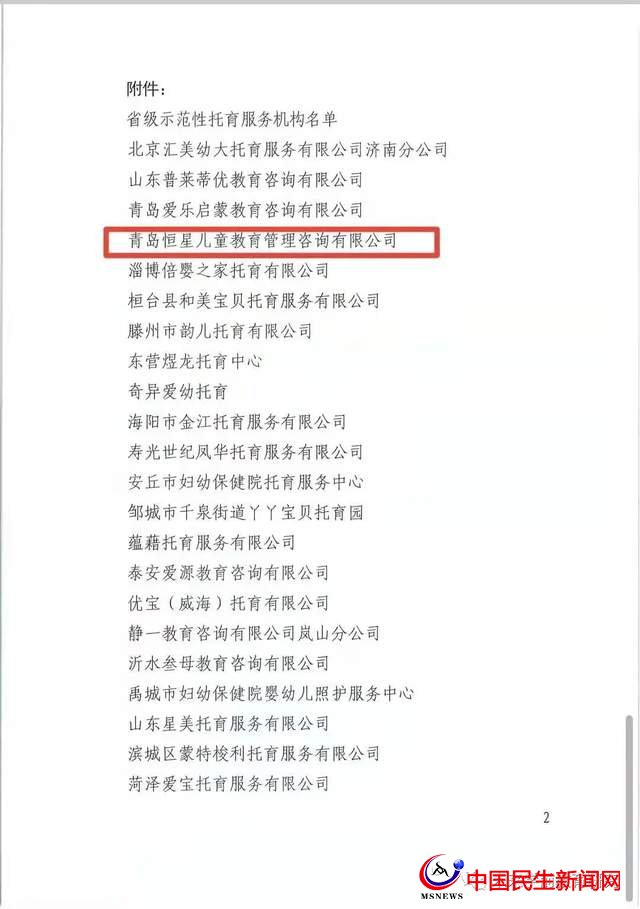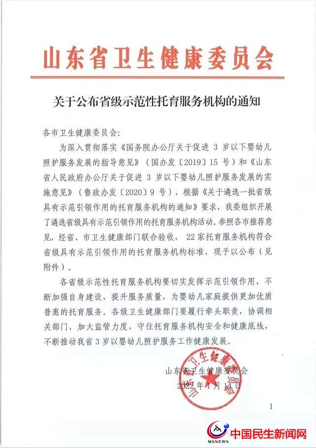 2022年1月14日,山東省衛(wèi)生健康委員會正式確定青島恒星托育中心為“省級示范性托育服務機構”!