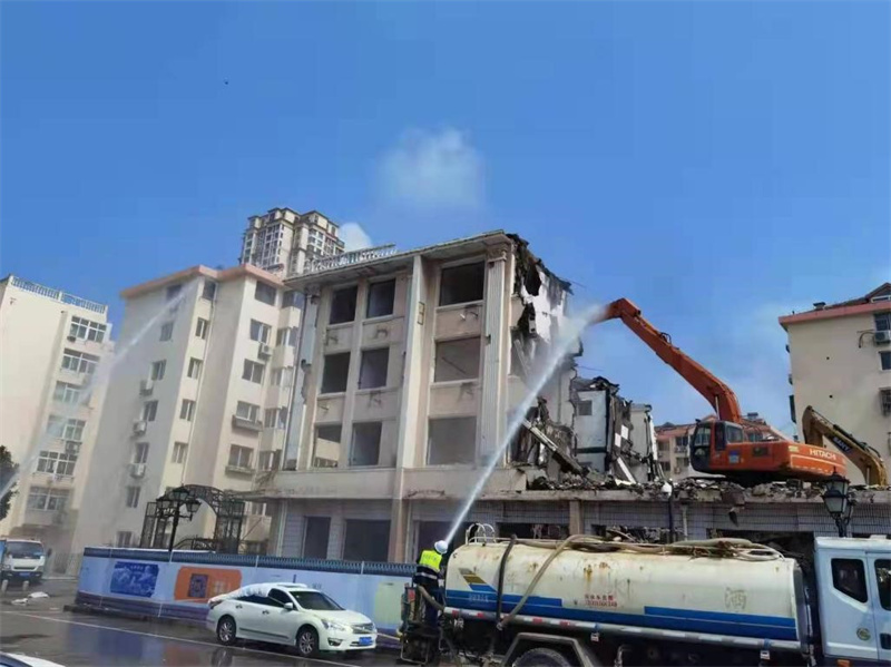除此之外,城建局協(xié)調(diào)地鐵4號(hào)線公司與周邊居民進(jìn)行了良好溝通,得到了居民對(duì)地鐵建設(shè)工作的理解和支持,在拆除全過(guò)程實(shí)現(xiàn)了居民“零投訴”,真正將實(shí)事辦好。在拆除過(guò)程中,因拆除房屋緊鄰周邊居民樓,為確保群眾安全,現(xiàn)場(chǎng)搭建了防護(hù)棚方便居民安全通行,同時(shí)設(shè)置圍擋、警戒線進(jìn)行封閉管理,增設(shè)鋼板對(duì)地面及市政井蓋進(jìn)行防護(hù),監(jiān)理負(fù)責(zé)人全程旁站,指導(dǎo)施工單位嚴(yán)格按照施工方案安全拆除;施工過(guò)程中也嚴(yán)格做好生態(tài)環(huán)保工作,拆除現(xiàn)場(chǎng)配備4輛灑水車,不間斷的進(jìn)行灑水降塵,減少揚(yáng)塵污染。