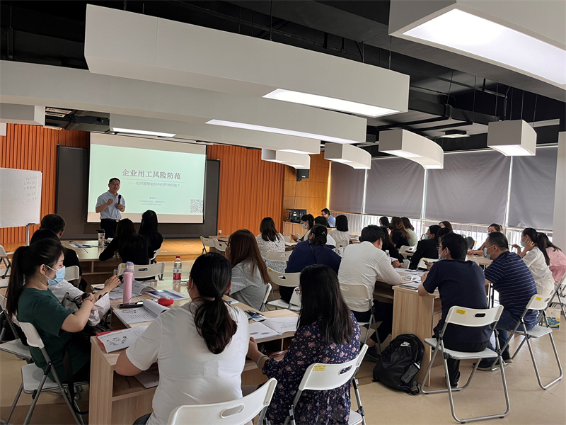 本次活動由市北區(qū)委組織部、市北區(qū)科技局、市北區(qū)人社局、中央商務(wù)區(qū)管委主辦,邀請了華夏基石HR事務(wù)所高級講師譚秀倫作為培訓(xùn)主講,他從用工期內(nèi)的核心風(fēng)險、保密竟業(yè)協(xié)議的簽訂、勞動關(guān)系解除終止的風(fēng)險防控等三個方面,對企業(yè)用工風(fēng)險的防范進行了講解。講座內(nèi)容豐富、深入淺出、切近實際,具有較強的指導(dǎo)性、可操作性。與會人員結(jié)合工作遇到的問題與困惑,與譚老師進行了探討交流,現(xiàn)場氣氛活躍熱烈。