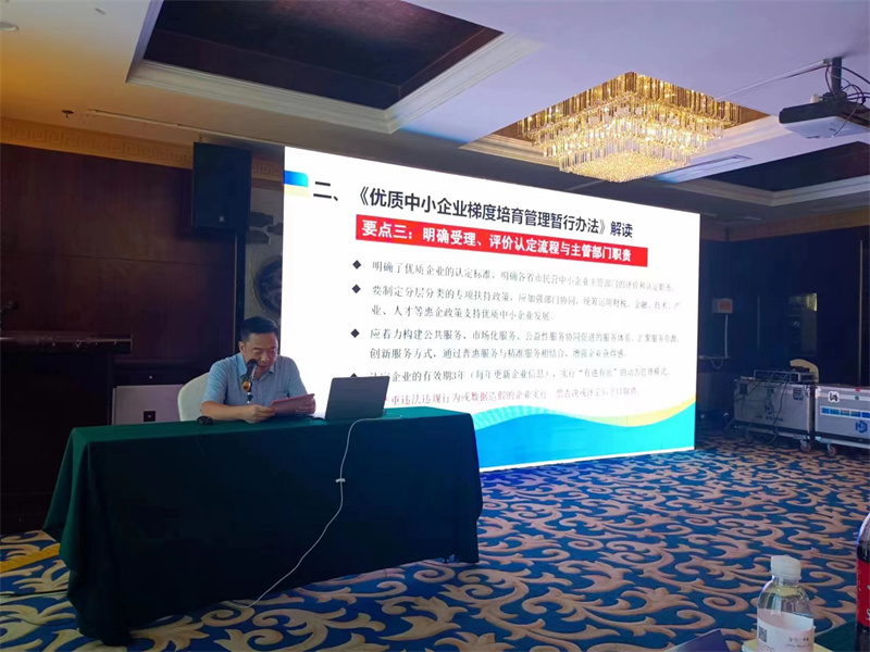 政策辦法解讀環(huán)節(jié),市民營經(jīng)濟(jì)局一級(jí)調(diào)研員李中強(qiáng),首先介紹了“專精特新”中小企業(yè)發(fā)展背景,體現(xiàn)了黨中央國務(wù)院對(duì)接“專精特新”的高度重視。重點(diǎn)解讀了工信部《優(yōu)質(zhì)中小企業(yè)梯度培育管理暫行辦法》和我市近期印發(fā)的《青島市加快推動(dòng)“專精特新”中小企業(yè)高質(zhì)量發(fā)展行動(dòng)方案(2022—2025年》,圍繞辦法要點(diǎn)、申報(bào)對(duì)象與產(chǎn)業(yè)、受理和評(píng)價(jià)認(rèn)定流程與主管部門職責(zé)、評(píng)價(jià)或認(rèn)定標(biāo)準(zhǔn)、注意事項(xiàng)等重點(diǎn)內(nèi)容進(jìn)行深入解讀,對(duì)于下一步加強(qiáng)優(yōu)質(zhì)中小企業(yè)培育和企業(yè)申報(bào)工作有積極的意義,深受企業(yè)歡迎。