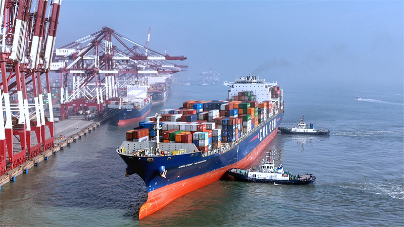 在山東港口青島港全自動化集裝箱碼頭,349米長的“以星鹿特丹”輪穩(wěn)穩(wěn)靠泊碼頭,與此同時,304米的“阿聯(lián)酋薩娜”輪依偎在107泊位,現(xiàn)場自動導引車往來穿梭,藍色橋吊平穩(wěn)作業(yè),軌道吊帶著集裝箱快速運轉(zhuǎn)……依托科技力量,元旦當日自動化碼頭吞吐量同比增長37.3%,創(chuàng)歷史新高。在泊作業(yè)的太平船務”澳新”航線、以星航運“美東”航線船時效率均創(chuàng)近三個月以來的效率新高, “以星鹿特丹”輪比原計劃提前3小時離泊。在QQCTU碼頭,歐線、美東、美西等主力干線集中到港,13條干支線船舶同時在泊,34條作業(yè)線齊頭并進,美東線“中遠海運荷花”輪綜合單機效率達到32.6自然箱/小時,創(chuàng)節(jié)日生產(chǎn)高效。