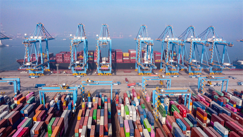 “今天在泊作業(yè)船舶11條,當天靠離船舶22艘次,作業(yè)箱量突破3萬標箱!其中,有10條船舶是服務RCEP各國家的船舶,航線連接了中日韓、東盟及澳洲、新西蘭的多個重要港口,元旦第一天堅守崗位,服務國家,意義非凡!”在山東港口青島港QQCT作業(yè)碼頭,操作三大隊隊長孫江精神昂揚。