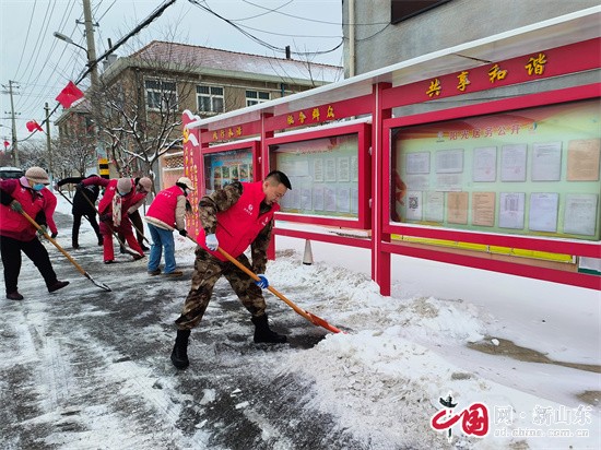 氣溫驟降、突發(fā)降雪,居民出行的安全和暢通牽動著小澗東社區(qū)黨總支的心。以黨建為引領(lǐng),充分發(fā)揮先鋒模范作用,社區(qū)黨總支書記帶頭示范,帶領(lǐng)社區(qū)全體“兩委”班子成員、工作人員組成“尚德銀行”紅色先鋒隊,第一時間投身鏟雪除冰最前線。他們在轄區(qū)范圍內(nèi)分段包干、分工協(xié)作,手持雪鏟、掃帚、鐵鍬等工具,在凜冽的寒風中浴“雪”奮戰(zhàn),雙手雖被凍得通紅,但熱情絲毫不減,忙碌的身影成為路面上一道靚麗風景線。他們不僅化身除冰清雪的“排頭兵”,更是文明出行的“先行者”,主動作為,安排人員勸導交通,及時提醒過往車輛謹慎駕駛、保持車距、減速慢行,確保道路行車安全。