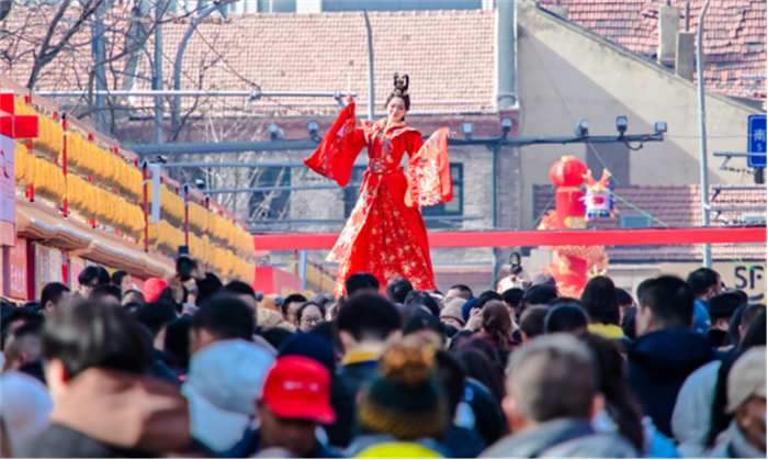 啟動(dòng)儀式在百年里院廣興里的鏗鏘鼓樂(lè)聲中啟幕。活動(dòng)以“騏驥迎春”“躍馬納福”“蜜福頌春”三個(gè)篇章串聯(lián),既有《躍馬甜心年》的青春律動(dòng),也有新民樂(lè)《萬(wàn)馬奔騰》、京歌《悟空》的創(chuàng)新演繹。情景劇《幸福糖球》將青島人闔家逛會(huì)的熱鬧場(chǎng)景搬上舞臺(tái),現(xiàn)場(chǎng)掌聲與歡笑聲交織,共同拉開(kāi)馬年新春的歡樂(lè)序章。