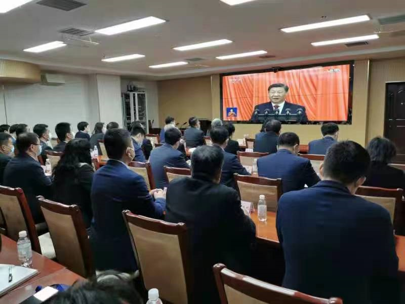 青島市人力資源社會保障局組織全體黨員干部集中收聽收看黨的二十大開幕盛況
