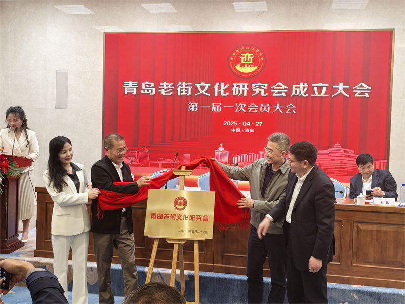 會后,青島市社會科學(xué)界聯(lián)合會二級巡視員劉寶、青島老街文化研究會發(fā)起人、青島市政府辦公廳原信息調(diào)研室主任費聿新,青島市行政審批服務(wù)局行政審批四處處長、一級調(diào)研員劉啟武、青島老街文化研究當(dāng)選會長宋芳華以及與會嘉賓共同為青島老街文化研究會揭牌。