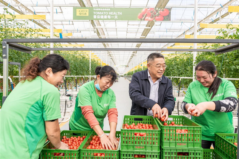 在萊西七星河新村智慧農(nóng)業(yè)小鎮(zhèn)的智能溫室大棚中,伴隨著悠揚的音樂,一株株大小一致紅色番茄在恒溫、恒濕的環(huán)境中將枝干伸向荷蘭紋絡(luò)式玻璃幕墻。據(jù)七星河新村第一書記張建東介紹,僅一個14000平方米智能溫室大棚便可解決就業(yè)200余人,有效拉動了當?shù)剞r(nóng)民就業(yè)。“數(shù)據(jù)已經(jīng)成為農(nóng)業(yè)生產(chǎn)中重要的生產(chǎn)要素,我們將視野投向數(shù)字農(nóng)業(yè),二期的智能溫室大棚投產(chǎn)在即,加上與之配套的中性硼硅藥用玻璃和碲化鎘薄膜太陽能電池項目,可安排勞動力2000人,實現(xiàn)年產(chǎn)值35億元、稅收3.7億元。”張建東說。