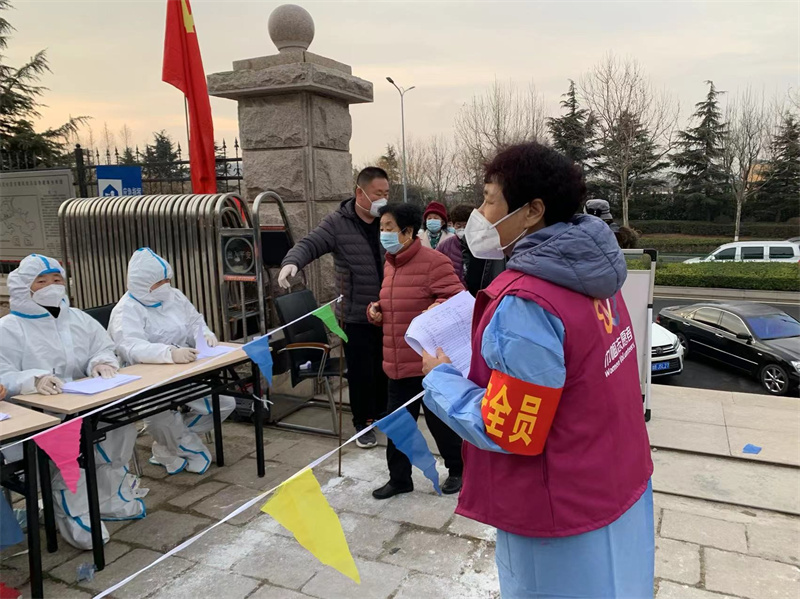在社區(qū),不少志愿者正在核酸檢測點(diǎn)為居民服務(wù),在他們的引導(dǎo)下,居民有序間隔排隊(duì),完成核酸檢測后,又有序離開現(xiàn)場。在志愿者的隊(duì)伍里,有不少“巾幗英雄”,她們穿著防護(hù)服,一干就是一天,吃飯、上廁所都顧不上;她們顧不上自家的老人和孩子,在戶外的寒風(fēng)中,守護(hù)著居民們的健康。