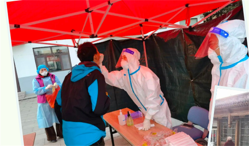 “嶗山紅”飄揚(yáng)在核酸檢測點(diǎn)