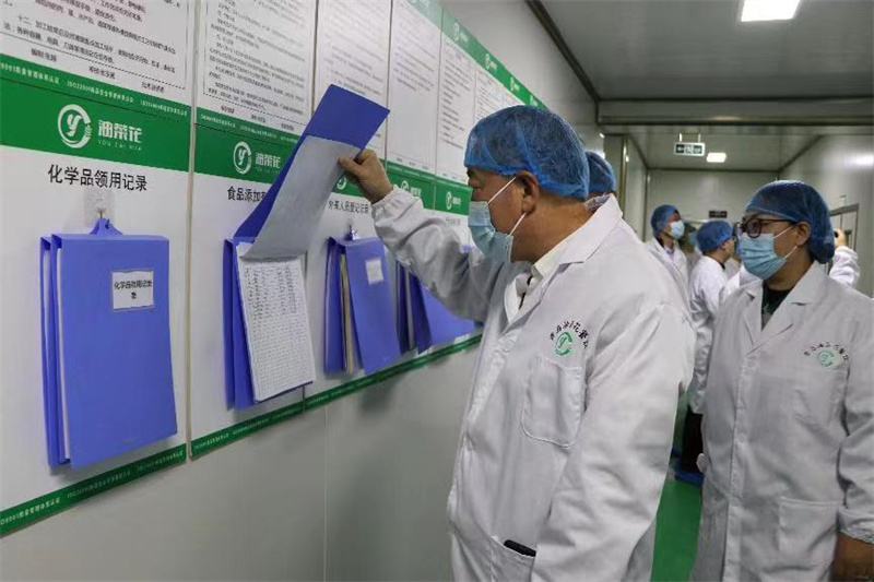 在青島油菜花餐飲管理有限公司,政協(xié)委員嚴格按照消殺流程進入生產(chǎn)車間,調(diào)研視察了公司配餐的全生產(chǎn)流程。