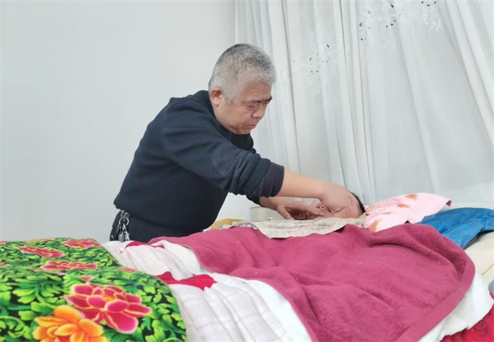 就這樣,王海亮的每一天都在工作與家庭間無(wú)縫切換,日子在忙碌與操勞中悄然流逝,而他對(duì)妻子的照料卻始終如一,從未有過(guò)絲毫懈怠。19年如一日,在他的悉心照料下,妻子身上始終干干凈凈,從未生過(guò)一次褥瘡。“我媳婦長(zhǎng)期臥床,關(guān)節(jié)僵化,還有癲癇,以前十幾天就發(fā)作一次,大發(fā)作時(shí)得打安定針。現(xiàn)在好多了,時(shí)間久了,她身體慢慢適應(yīng)了些。” 王海亮談及妻子的病情,言語(yǔ)中滿是心疼。
