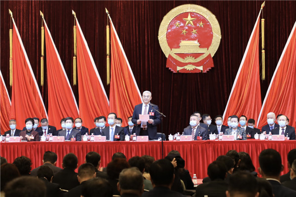在與會代表的熱烈掌聲中,張永國代表區(qū)政府向大會作工作報告。報告共分三個部分:一、“十三五”時期和2020 年工作回顧;二、“十四五”時期奮斗目標、主要任務和2035 年遠景目標;三、2021 年主要工作安排。