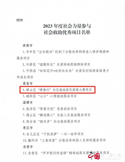 當(dāng)前位置:首頁 > 健康 > 醫(yī)院 > 青島嶗山區(qū)救助服務(wù)項目獲評2023年度全省社會力量參與社會救助優(yōu)秀項目