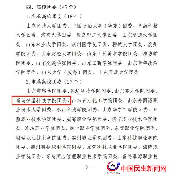 另外,共青團(tuán)山東省委發(fā)布了2021年度工作評(píng)價(jià)表揚(yáng)通知名單,恒星學(xué)院校團(tuán)委在全省共青團(tuán)工作考核中獲評(píng)“優(yōu)秀”等次,被點(diǎn)名表揚(yáng)。
