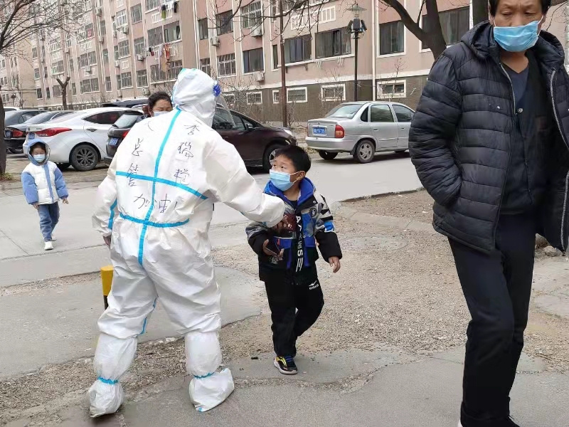 自3月5日凌晨開(kāi)始,她一直奔走在頤和花苑社區(qū)的各個(gè)管控區(qū)的核酸檢測(cè)點(diǎn),辦公室,各個(gè)卡點(diǎn),調(diào)配防疫物資,合理分配人員,打印各種表格,檢測(cè)點(diǎn)訂飯,維持檢測(cè)居民的秩序,信息錄入,為集中隔離人員送防護(hù)物資,······她風(fēng)風(fēng)火火的身影無(wú)處不在,她那關(guān)切著急略帶沙啞的聲音無(wú)處不在,她每天基本上是在五點(diǎn)就會(huì)被各種電話叫醒,事必躬親的她,結(jié)束一天的工作基本已是后半夜,一天的睡眠時(shí)間也就三五個(gè)小時(shí)。她每天都要接打幾百個(gè)電話,即使身心疲憊,但是她依然堅(jiān)持親力親為,有危險(xiǎn),她說(shuō)我上;有困難,她說(shuō),我來(lái)。每天她都是把檢測(cè)點(diǎn)的事情忙完以后才能默默的吃上一口冷飯,以至于十八輪核酸檢測(cè)下來(lái),她瘦了十斤。也正是因?yàn)樗挠H力親為和“無(wú)所不能”,被檢測(cè)點(diǎn)的小伙伴們戲稱(chēng)為“大總管”。