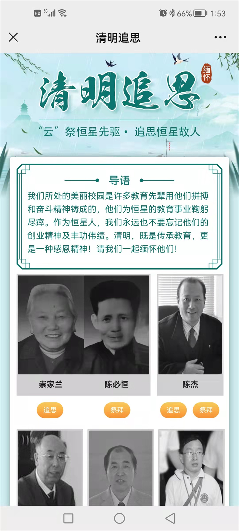 青島快訊 梨花風起正“清明”。清明是慎終追遠的傳統(tǒng)節(jié)日,青島恒星科技學院積極開展“網(wǎng)上祭英烈”活動,以緬懷革命先烈,傳承紅色基因的同時,他們還開設了專題,為恒星的教育事業(yè)發(fā)展努力奮斗過的恒星故人們進行了“云”祭奠。