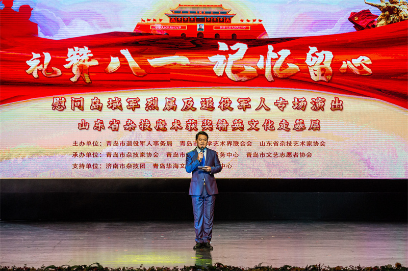 青島快訊 7月26日,為喜迎黨的二十大勝利召開(kāi),在中國(guó)人民解放軍建軍95周年即將到來(lái)之際,由青島市文學(xué)藝術(shù)界聯(lián)合會(huì)、青島市退役軍人事務(wù)局、山東省雜技藝術(shù)家協(xié)會(huì)主辦,青島市雜技家協(xié)會(huì)、青島市退役軍人服務(wù)中心、青島市文藝志愿者協(xié)會(huì)承辦的“禮贊八一•記憶留心”慰問(wèn)島城軍烈屬及退役軍人專(zhuān)場(chǎng)文藝演出,在青島永安大劇院隆重舉行。