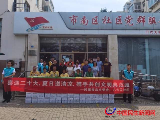 8月18日上午,民建青島市委會(huì)在八大關(guān)街道辦事處八大關(guān)社區(qū)開展“喜迎二十大,夏日送清涼,攜手共創(chuàng)文明典范城”慰問活動(dòng),為轄區(qū)環(huán)衛(wèi)工人和社區(qū)工作人員送去價(jià)值5000元的礦泉水和解暑飲料。民建青島市委會(huì)秘書長(zhǎng)曹麗輝、辦公室主任全淵、社會(huì)服務(wù)處處長(zhǎng)許影、企業(yè)委員會(huì)副主任趙靜,八大關(guān)街道辦事處主任王佩佩、八大關(guān)社區(qū)黨委書記張巍峰、八大關(guān)社區(qū)工作站負(fù)責(zé)人張恒銘參加活動(dòng)。同時(shí),現(xiàn)場(chǎng)還有10余名環(huán)衛(wèi)工和社區(qū)工作人員代表參加了活動(dòng)。