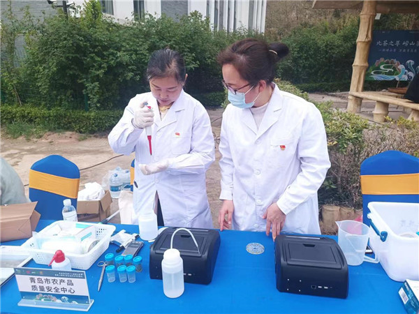 青島市農(nóng)產(chǎn)品質(zhì)量安全中心農(nóng)產(chǎn)品公益檢測車開進茶園和節(jié)會現(xiàn)場