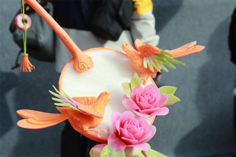 值得一提的是,本次蘿卜雕刻大賽恰逢農(nóng)歷正月初九,中國北方素有“咬春”的習(xí)俗,即在這一天吃蘿卜,寓意“長長久久,平平安安”?;顒?dòng)現(xiàn)場,栩栩如生的蘿卜雕刻作品不僅讓市民游客大飽眼福,更讓大家感受到了濃濃的年味和美好的祝福。