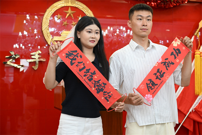 “七夕是中國傳統(tǒng)的情人節(jié),也是一個(gè)神圣的結(jié)婚紀(jì)念日。在這個(gè)浪漫幸福的日子里,我們工作人員提供更便捷的服務(wù)。同時(shí)我們開展移風(fēng)易俗宣傳工作,我們真誠希望廣大新人樹立文明、節(jié)儉、高尚的婚俗意識,不大操大辦、抵制高額彩禮、爭做文明婚俗的倡導(dǎo)者、踐行者、推動者、做新時(shí)代文明新人,建立和諧家庭。”即墨區(qū)民政局婚姻登記處主任張葵葵表示,為了迎接七夕登記小高峰,即墨區(qū)婚姻登記處提前做好應(yīng)急預(yù)案,工作人員提前到崗、延長工作時(shí)間、增設(shè)登記服務(wù)窗口,保證登記工作高效、流程通暢。