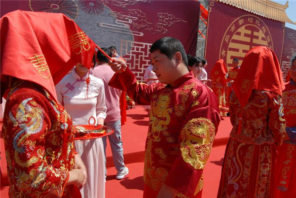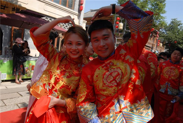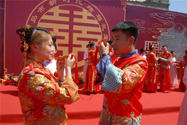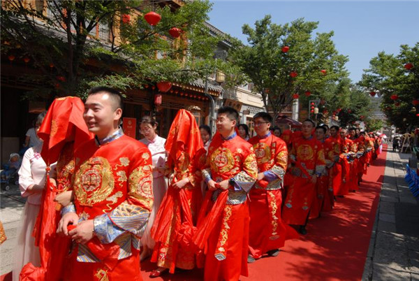 時(shí)尚 > 古典新風(fēng)集體婚禮“ 映紅”青島即墨古城