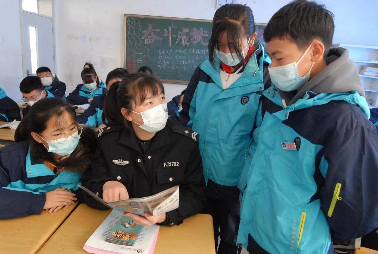 12月1日,山東省青島市公安局即墨分局藍(lán)村派出所民警在青島市即墨區(qū)藍(lán)村中學(xué)為學(xué)生講解交通安全知識。