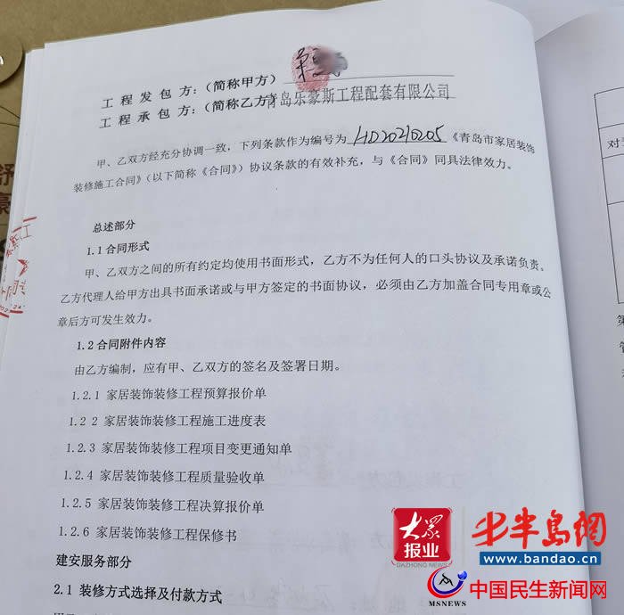 2021年12月26日宋先生與青島樂豪斯工程配套有限公司簽訂裝修合同,“當(dāng)時(shí)工作人員答應(yīng)是2月19號(hào)開工,這期間我一直跟他們溝通,對(duì)方一直找各種理由延遲施工。”