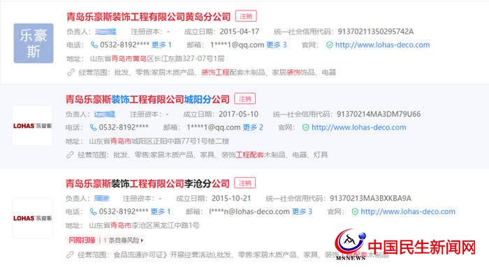 而與樂豪斯相關(guān)聯(lián)的部分分公司,黃島分公司、城陽分公司、李滄分公司處于注銷狀態(tài)。